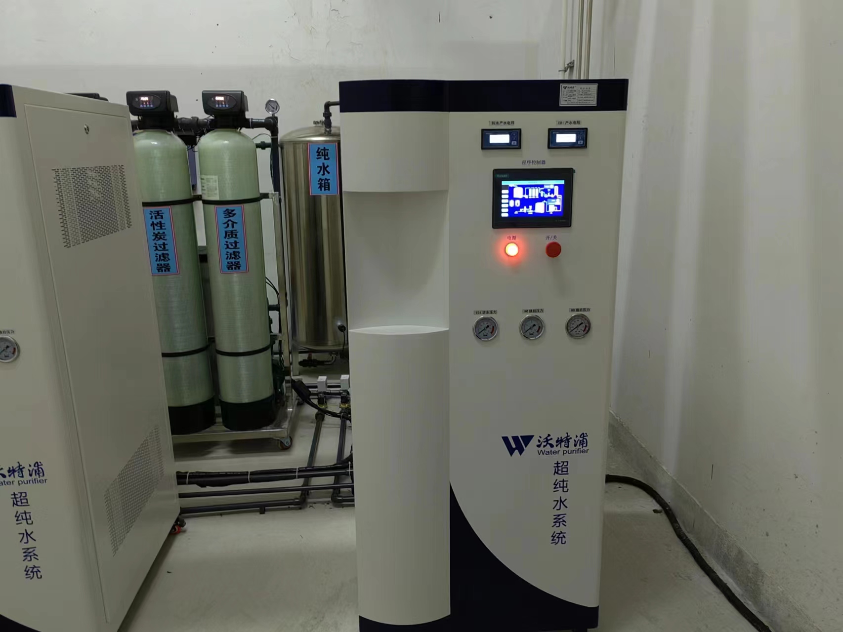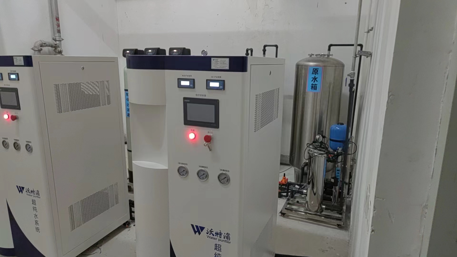 系統(tǒng)由中央純水設備、純水系統(tǒng)管網、終端純水取水點、終端超純水設備組成,系統(tǒng)主機采用一備一用,可同時制水、不間斷供水,純水電導率≤5μS/cm(25℃)達到三級水水質標準,超純水電阻率≥18 M?.cm@25℃,達到高純水水質標準。